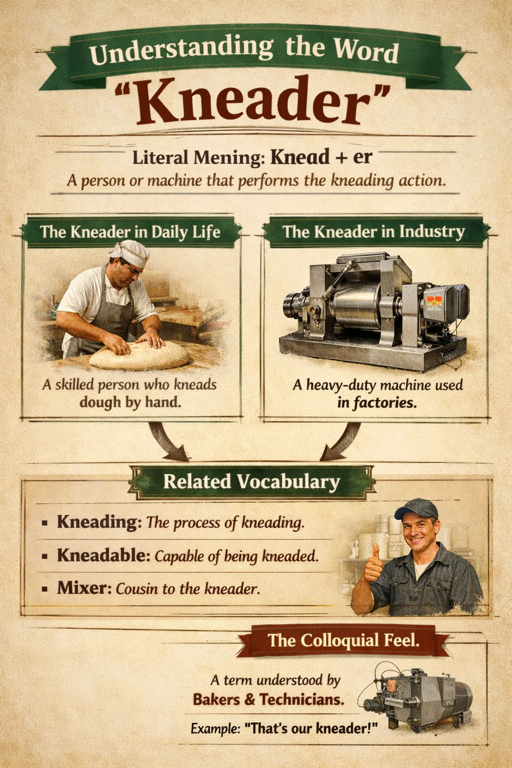 Słowo to składa się z czasownika „ugniatać” (zagniatać ciasto) i przyrostka „-er” (przyrostek wskazujący osobę lub rzecz).